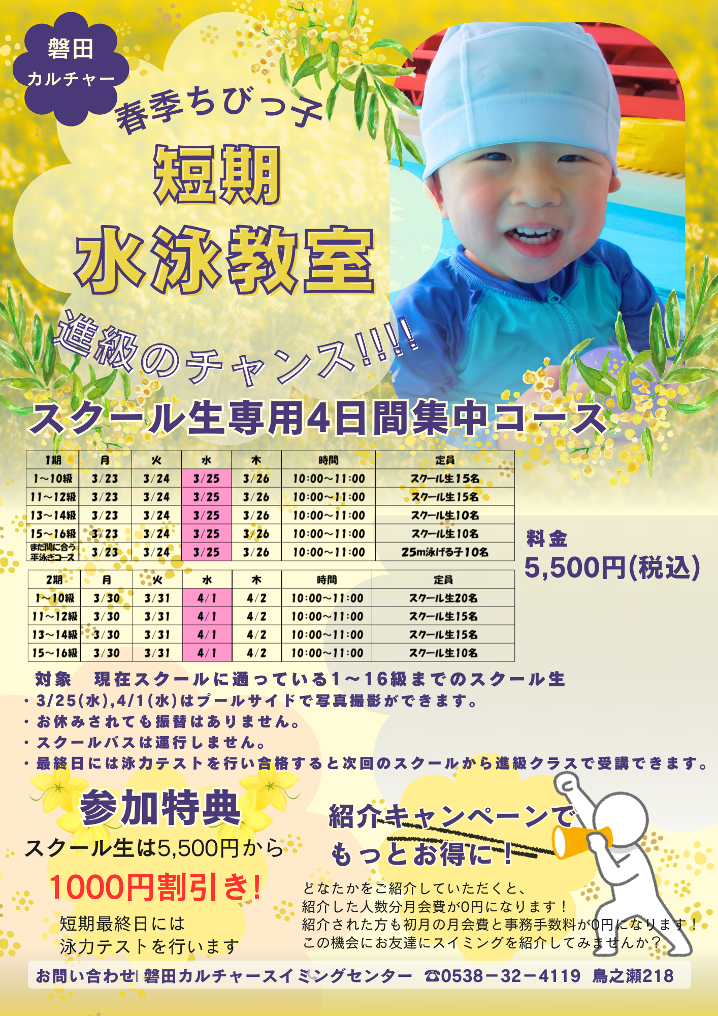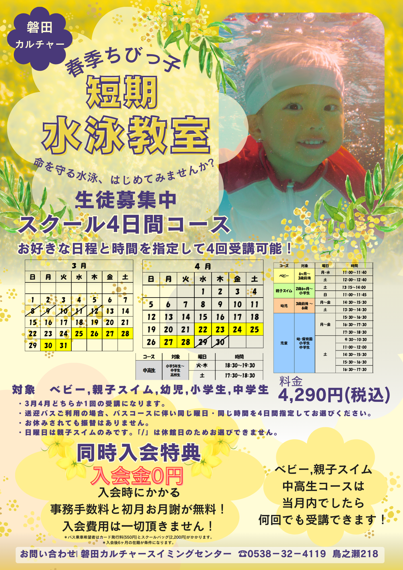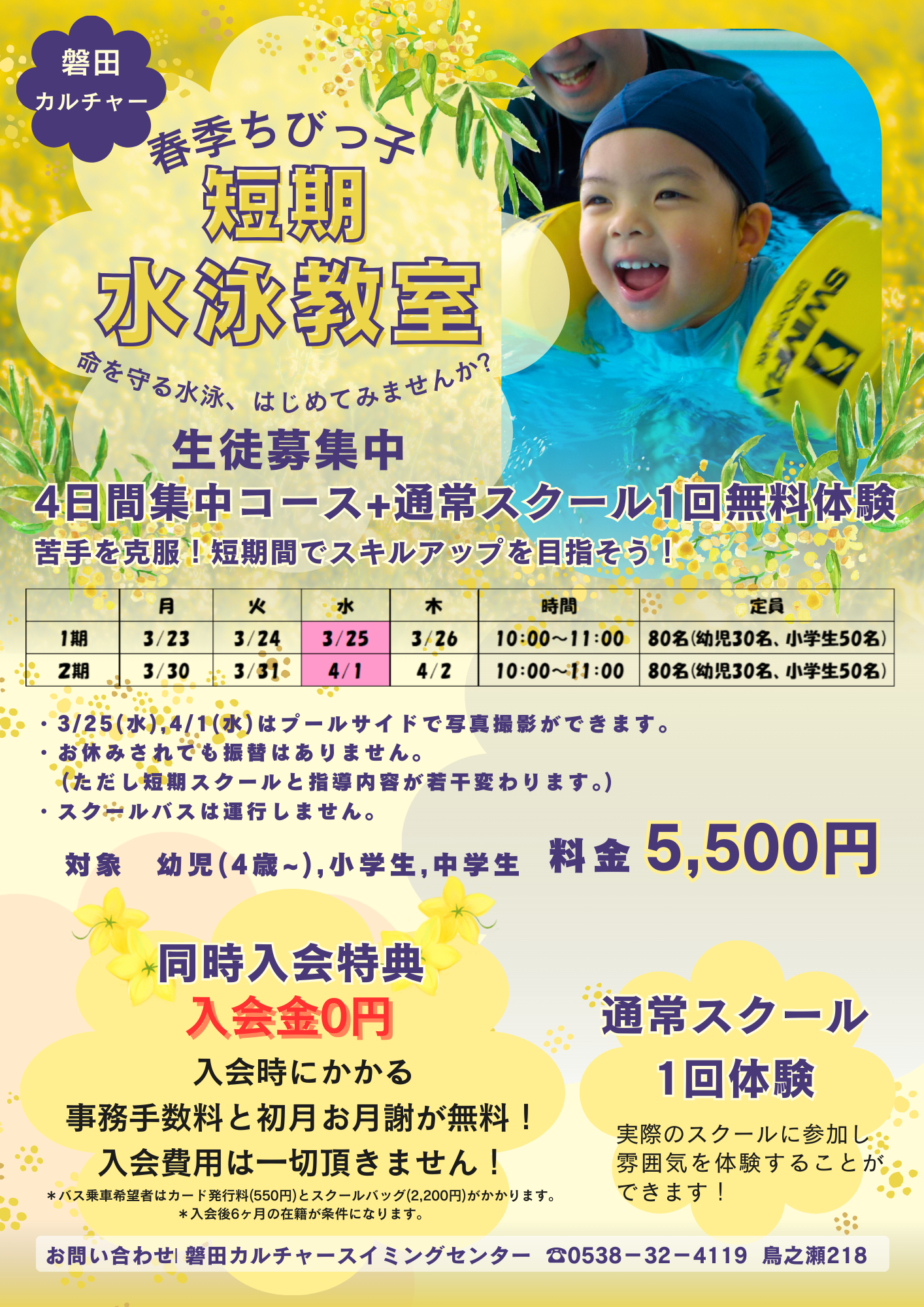 春季ちびっ子短期水泳教室が開催決定しました!